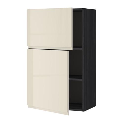 МЕТОД Навесной шкаф с полками/2дверцы - под дерево черный, Воксторп глянцевый светло-бежевый
