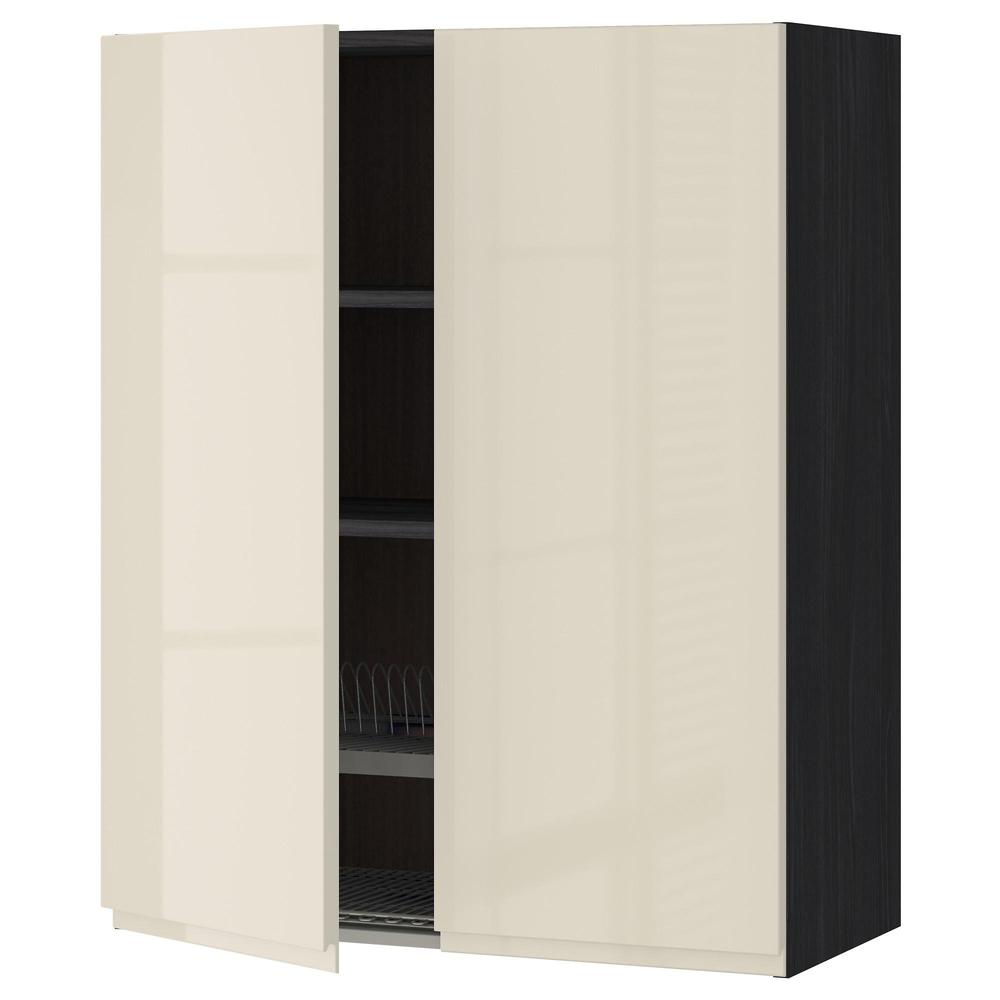 МЕТОД Навесной шкаф с посуд суш/2 дврц - под дерево черный, Воксторп глянцевый светло-бежевый, 80x100 см