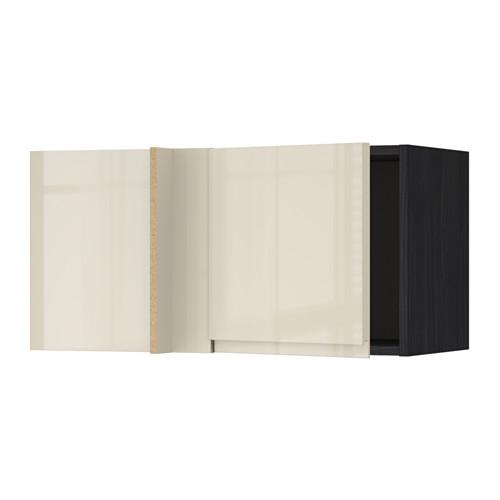 МЕТОД Шкаф навесной угловой - под дерево черный, Воксторп глянцевый светло-бежевый