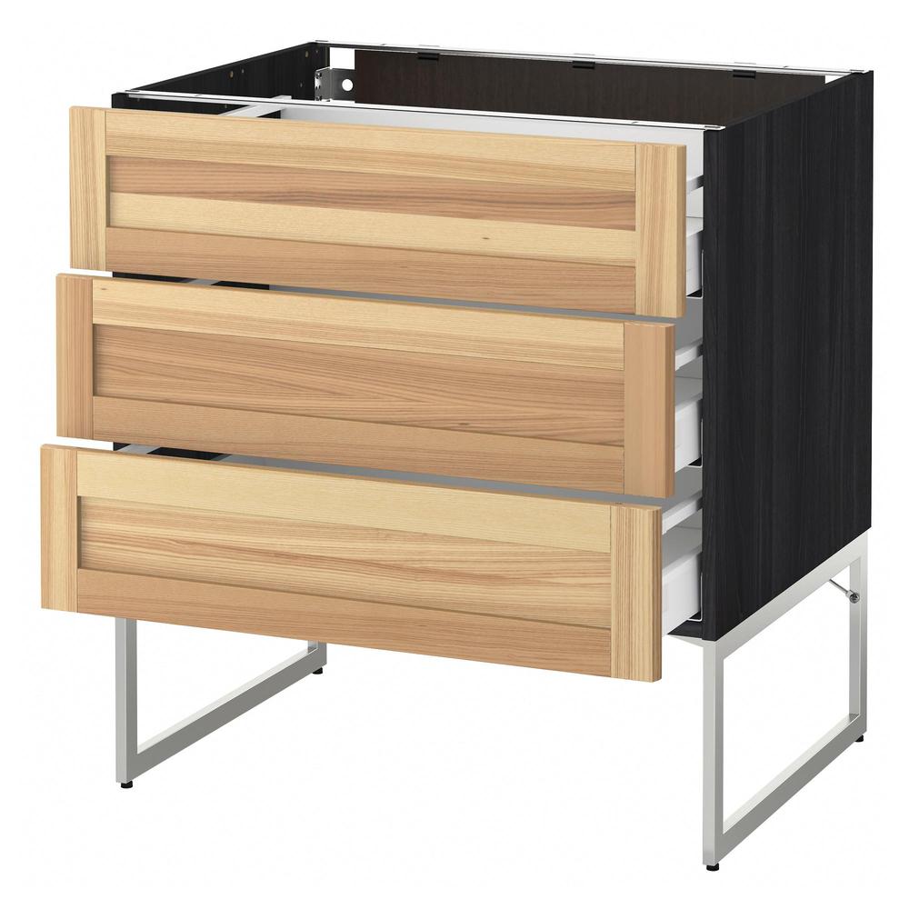 МЕТОД / МАКСИМЕРА Нплн шк 3 фрнт/3 средн ящика - под дерево черный, Торхэмн естественный ясень, 80x60x60 см
