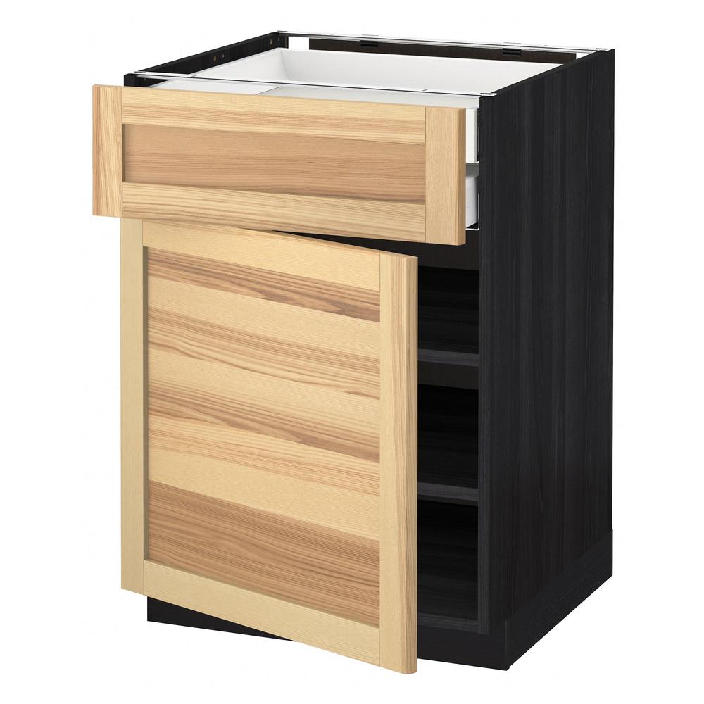 МЕТОД / МАКСИМЕРА Напольн шкаф двр/фр пнл/плк/2низ ящ - под дерево черный, Торхэмн естественный ясень, 60x60 см