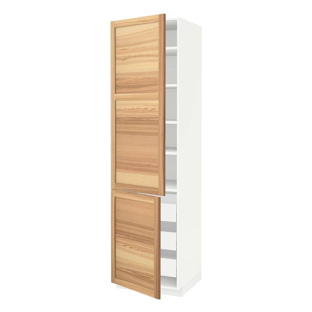 МЕТОД / МАКСИМЕРА Высокий шкаф+полки/3 ящика/2 дверцы - белый, Торхэмн естественный ясень, 60x60x220 см