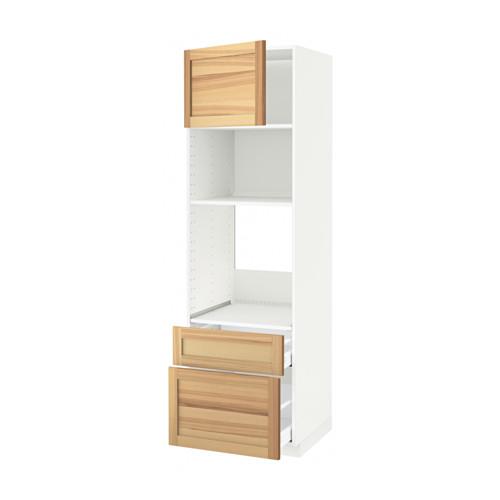 МЕТОД / МАКСИМЕРА Высок шкаф д/духовки/СВЧ/дверца/2ящ - белый, Торхэмн естественный ясень, 60x60x200 см