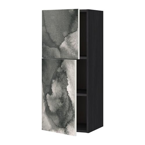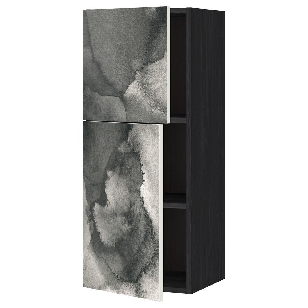 МЕТОД Навесной шкаф с полками/2дверцы - под дерево черный, Кальвиа с печатным рисунком, 40x100 см