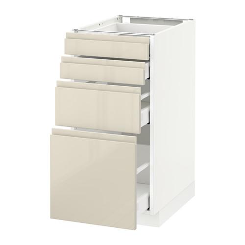 МЕТОД / МАКСИМЕРА Напольн шкаф 4 фронт панели/4 ящика - белый, Воксторп глянцевый светло-бежевый, 40x60 см