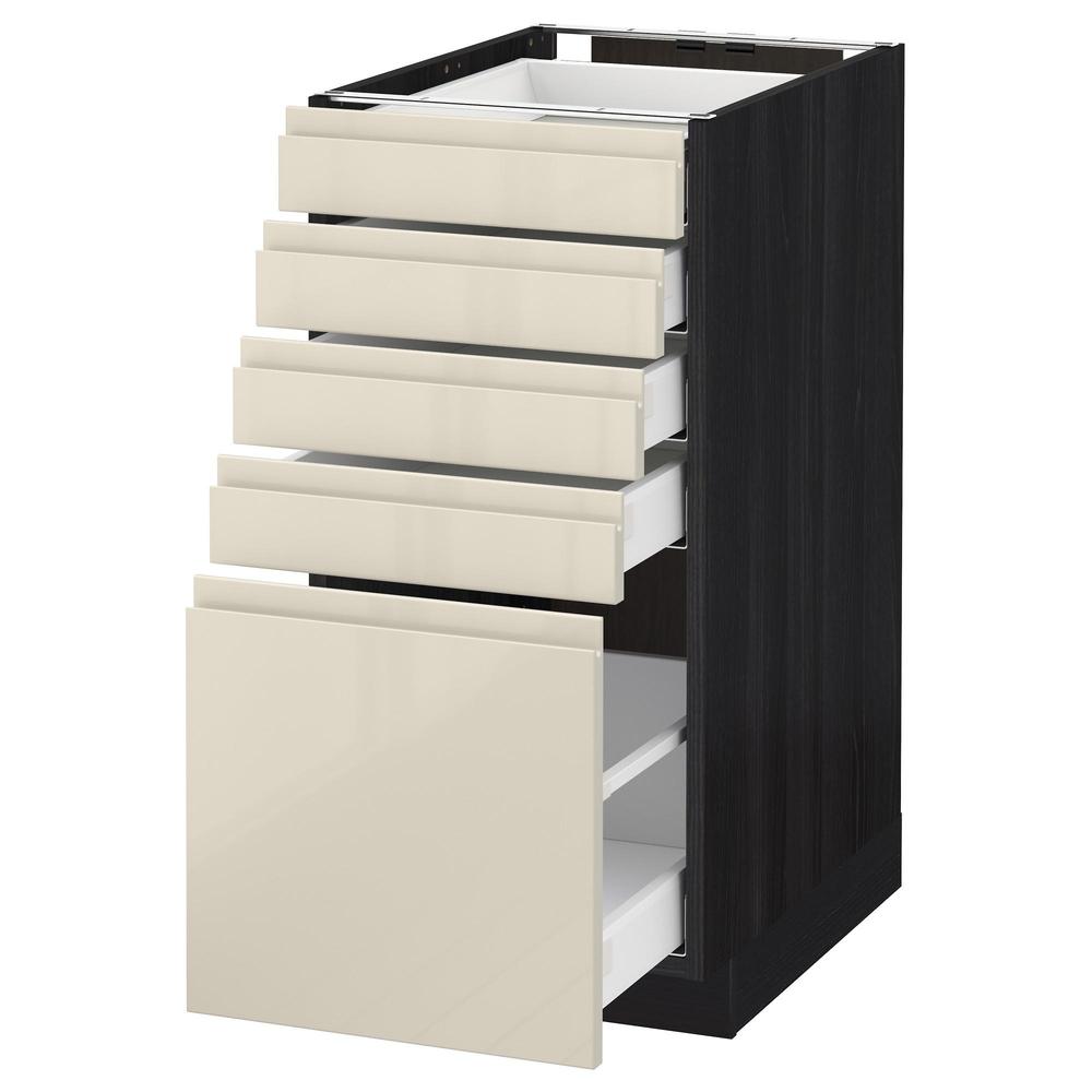 МЕТОД / МАКСИМЕРА Напольный шкаф с 5 ящиками - под дерево черный, Воксторп глянцевый светло-бежевый, 40x60 см