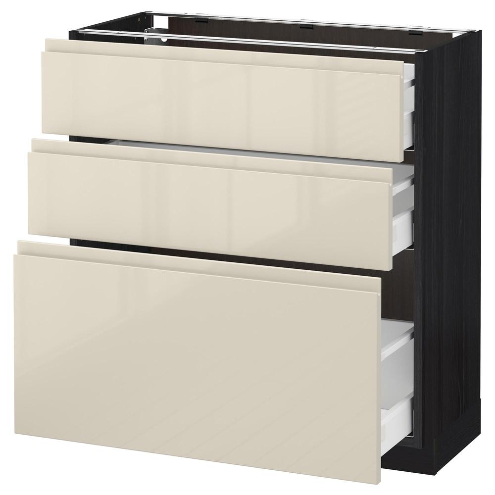 МЕТОД / МАКСИМЕРА Напольный шкаф с 3 ящиками - под дерево черный, Воксторп глянцевый светло-бежевый, 80x37 см