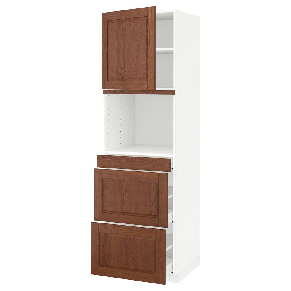 МЕТОД / МАКСИМЕРА Высокий шкаф д/СВЧ/дверца/3ящика - белый, Филипстад коричневый, 60x60x200 см