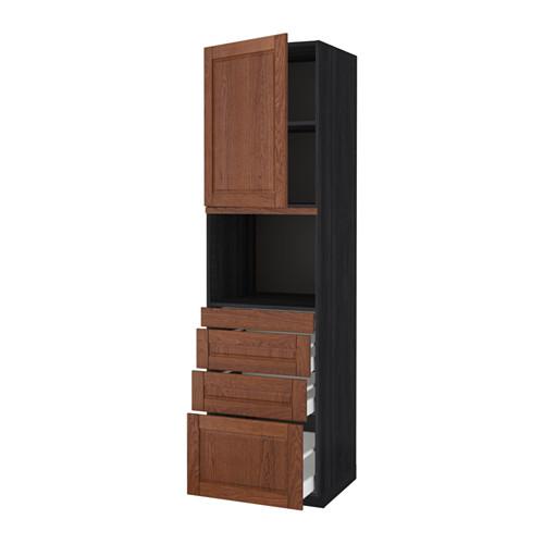 МЕТОД / МАКСИМЕРА Высокий шкаф д/СВЧ/дверца/4ящика - под дерево черный, Филипстад коричневый, 60x60x220 см