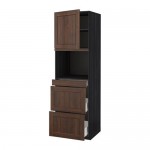МЕТОД / ФОРВАРА Высокий шкаф д/СВЧ/дверца/3ящика - под дерево черный, Эдсерум под дерево коричневый, 60x60x220 см
