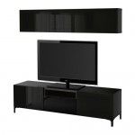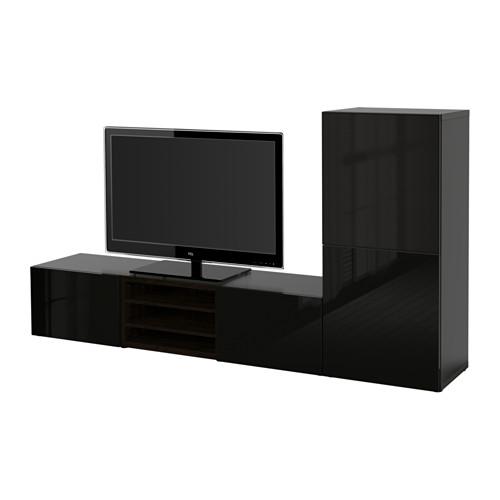 БЕСТО Шкаф для ТВ, комбин/стеклян дверцы - черно-коричневый/Сельсвикен глянцевый/черный дымчатое стекло, направляющие ящика, плавно закр