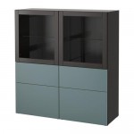 БЕСТО Комбинация д/хранения+стекл дверц - черно-коричневый/Вальвикен серо-бирюзовый, прозрачное стекло, направляющие ящика, плавно закр