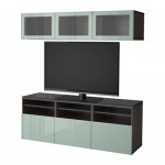 БЕСТО Шкаф для ТВ, комбин/стеклян дверцы - черно-коричневый Сельсвикен/глянцевый/серо-зеленый светлый прозрачное стекло, направляющие ящика,нажимные