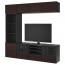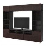 БЕСТО Шкаф для ТВ, комбин/стеклян дверцы - черно-коричневый/Инвикен черно-коричневый прозрачное стекло, направляющие ящика,нажимные