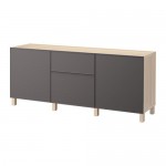 БЕСТО Комбинация для хранения с ящиками - под беленый дуб/Грундсвикен темно-серый, направляющие ящика, плавно закр