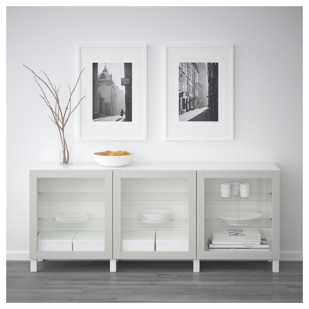 БЕСТО Комбинация для хранения с дверцами - белый/Синдвик светло-серый прозрачное стекло 0.0/5 оценка (0 голосов)