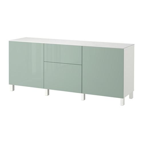 БЕСТО Комб для хран с дверц/ящ - белый/Сельсвикен глянцевый/серо-зеленый светлый, направляющие ящика, плавно закр