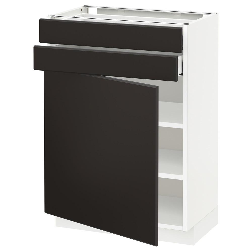 МЕТОД / МАКСИМЕРА Напольный шкаф с дверцей/2 ящиками - белый, Кунгсбакка антрацит, 60x37 см