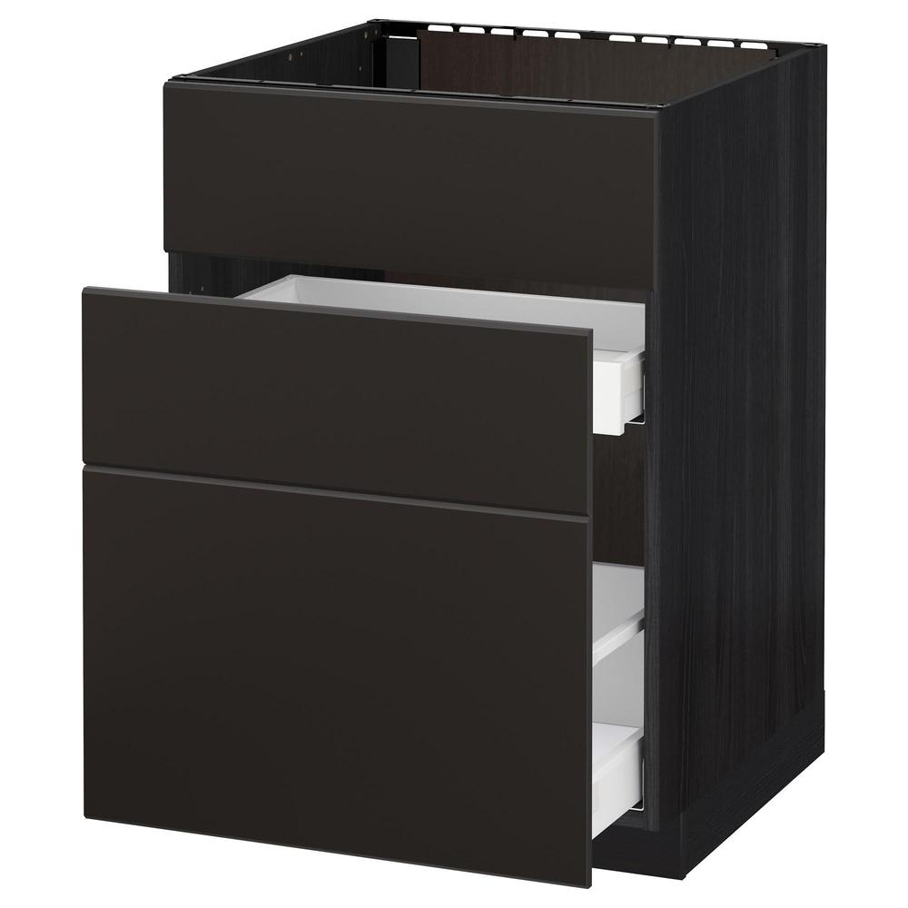 МЕТОД / МАКСИМЕРА Напольн шк п-мойку+3фрнт пнл/2ящ - под дерево черный, Кунгсбакка антрацит, 60x60 см