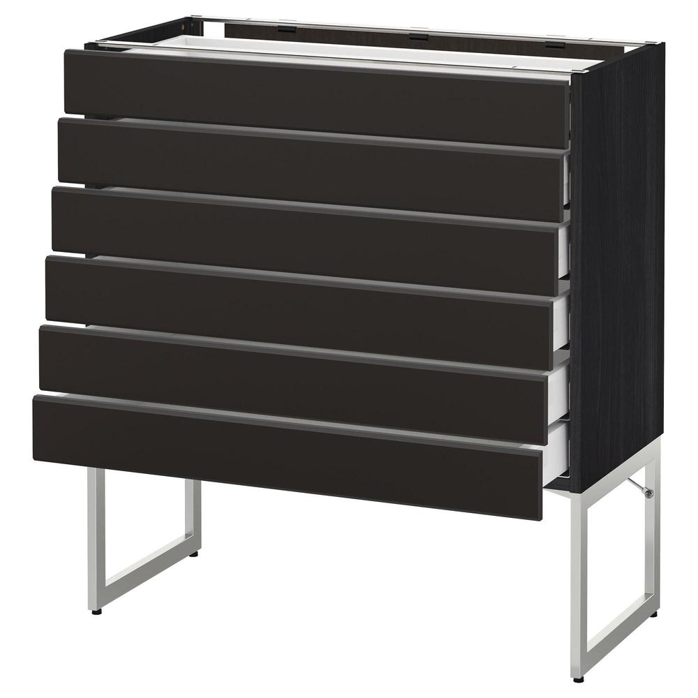 МЕТОД / МАКСИМЕРА Напольн шкаф 6фронт пнл/6 низ ящ - под дерево черный, Кунгсбакка антрацит, 80x37x60 см
