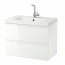 ГОДМОРГОН / ОДЕНСВИК Шкаф для раковины с 2 ящ - глянцевый белый