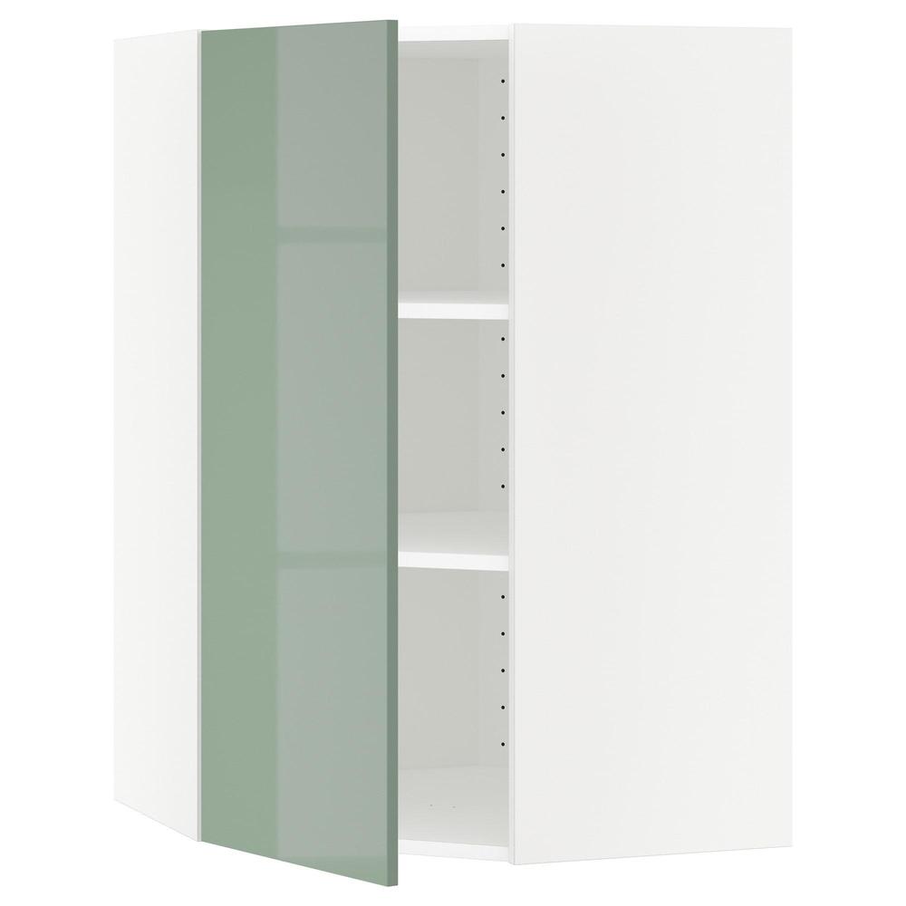 МЕТОД Угловой навесной шкаф с полками - белый, Калларп глянцевый светло-зеленый, 68x100 см