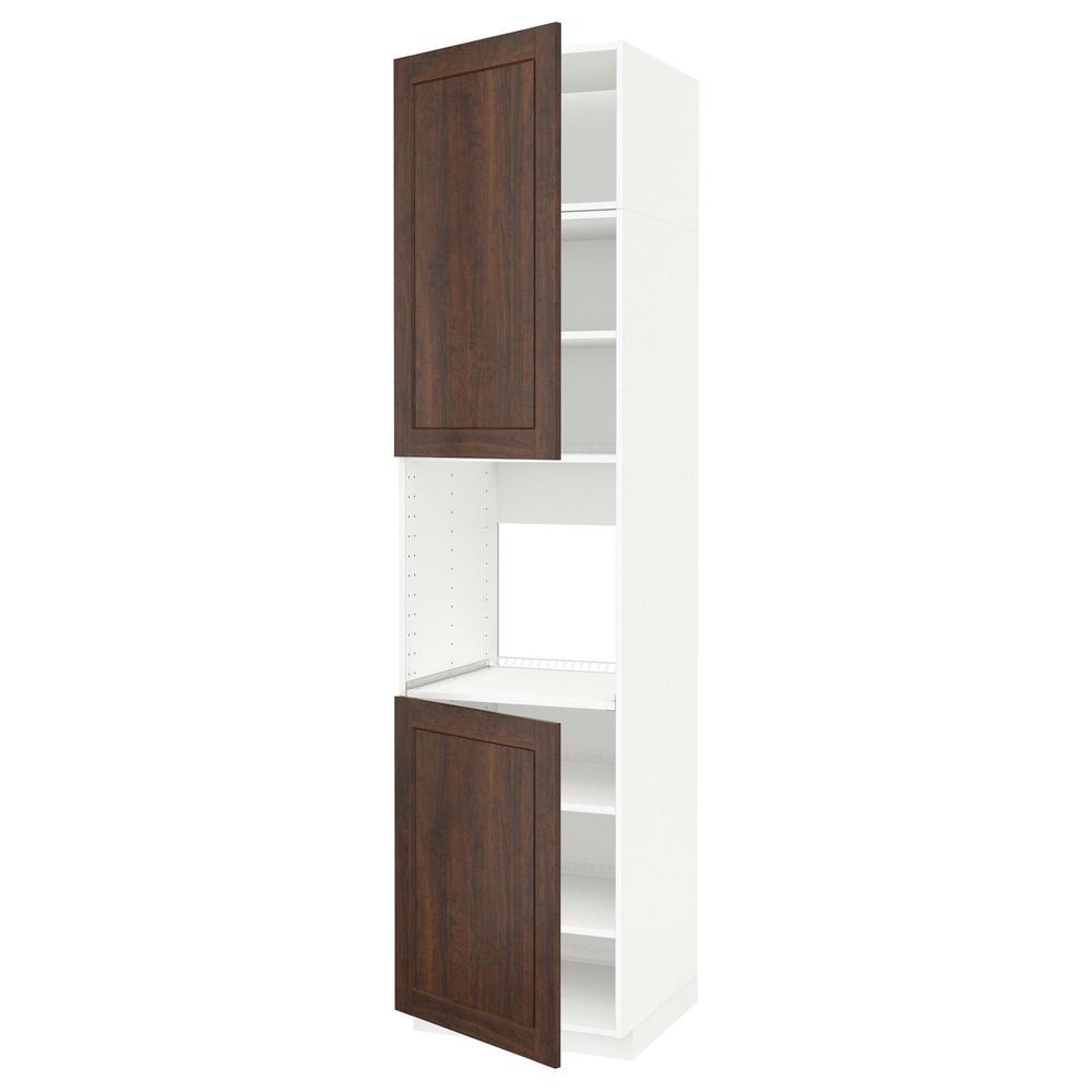МЕТОД Высок шкаф д/духовки/2дверцы/полки - белый, Эдсерум под дерево коричневый, 60x60x240 см