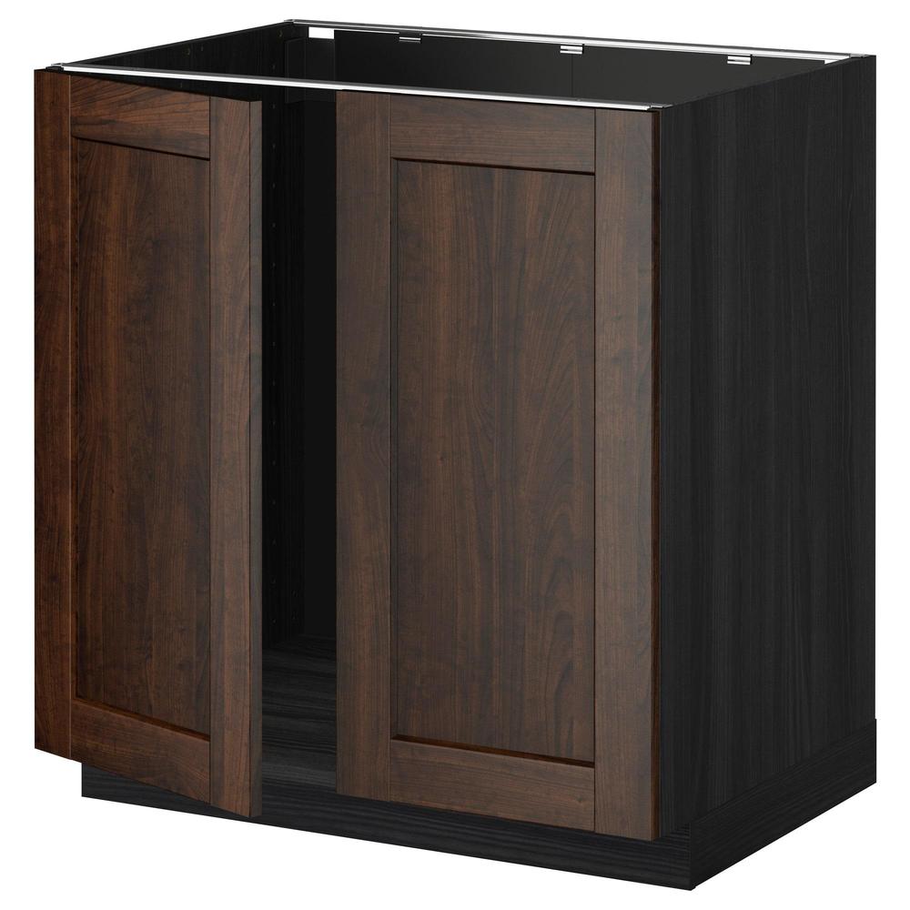 МЕТОД Напольн шкаф д раковины+2 двери - под дерево черный, Эдсерум под дерево коричневый, 80x60 см
