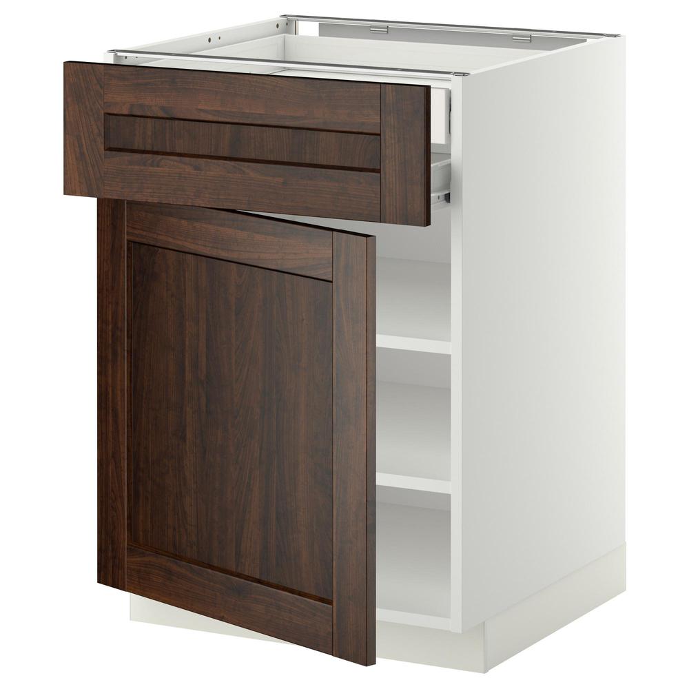 МЕТОД / ФОРВАРА Напольн шкаф двр/фр пнл/плк/2низ ящ - белый, Эдсерум под дерево коричневый, 60x60 см