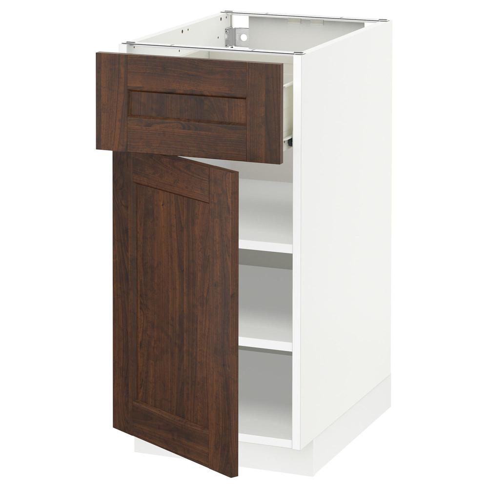 МЕТОД / ФОРВАРА Напольный шкаф с ящиком/дверью - белый, Эдсерум под дерево коричневый, 40x60 см