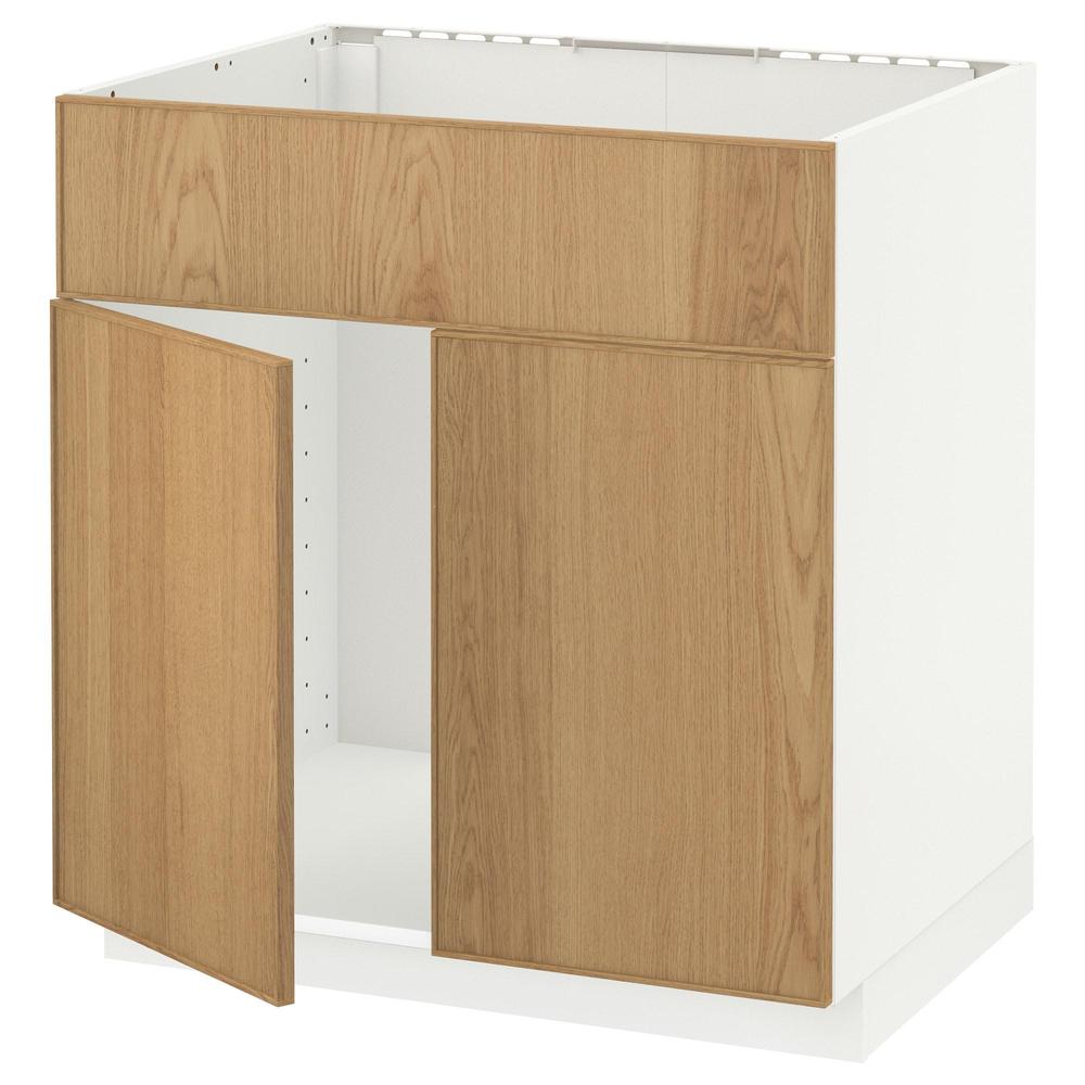 МЕТОД Напольн шкаф п-мойку 2 двр/фрн пнл - белый, Экестад дуб