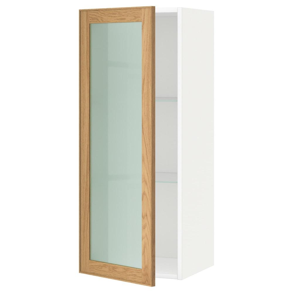 МЕТОД Навесной шкаф с полками/стекл дв - белый, Экестад дуб, 40x100 см