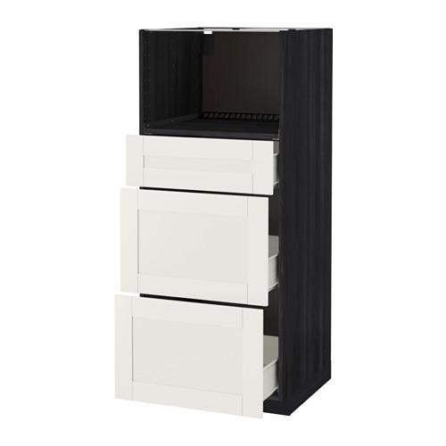 МЕТОД / ФОРВАРА Высокий шкаф д/СВЧ с 3 ящиками - под дерево черный, Сэведаль белый