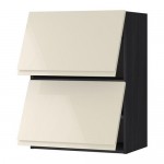 МЕТОД Навесной шкаф/2 дверцы, горизонтал - под дерево черный, Воксторп глянцевый светло-бежевый, 60x80 см