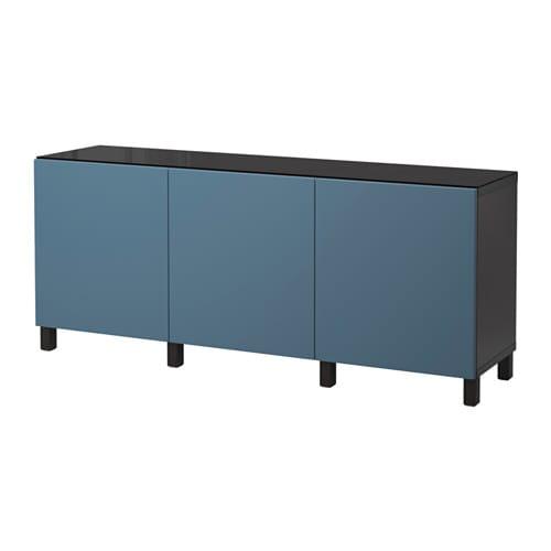 БЕСТО Комбинация для хранения с дверцами - черно-коричневый/Вальвикен темно-синий