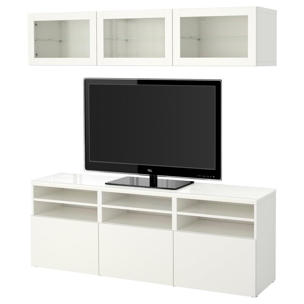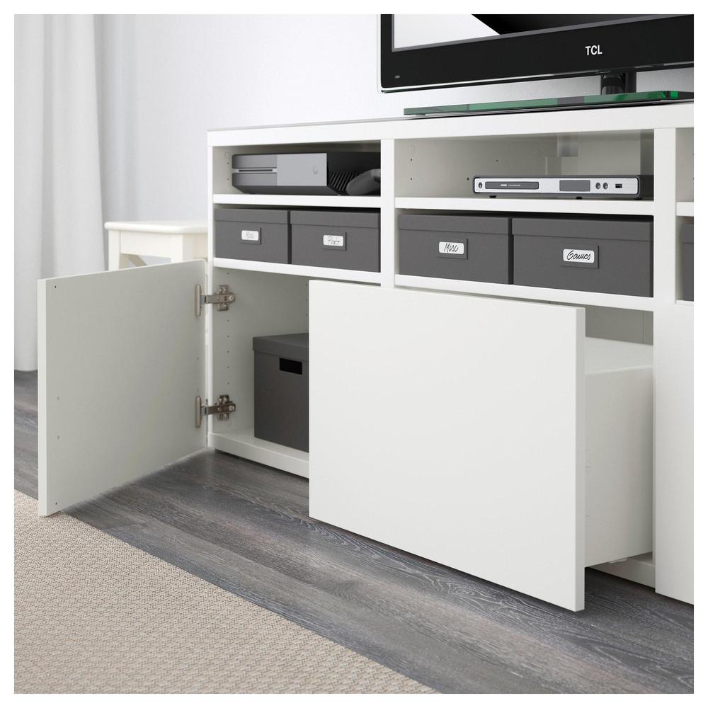 БЕСТО Шкаф для ТВ, комбин/стеклян дверцы - Лаппвикен/Синдвик белый прозрачное стекло, направляющие ящика, плавно закр