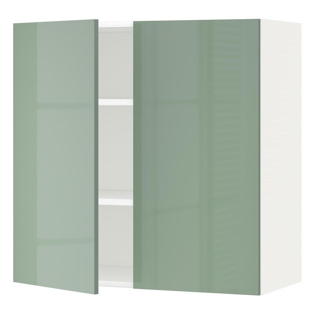 МЕТОД Навесной шкаф с полками/2дверцы - белый, Калларп глянцевый светло-зеленый, 80x80 см