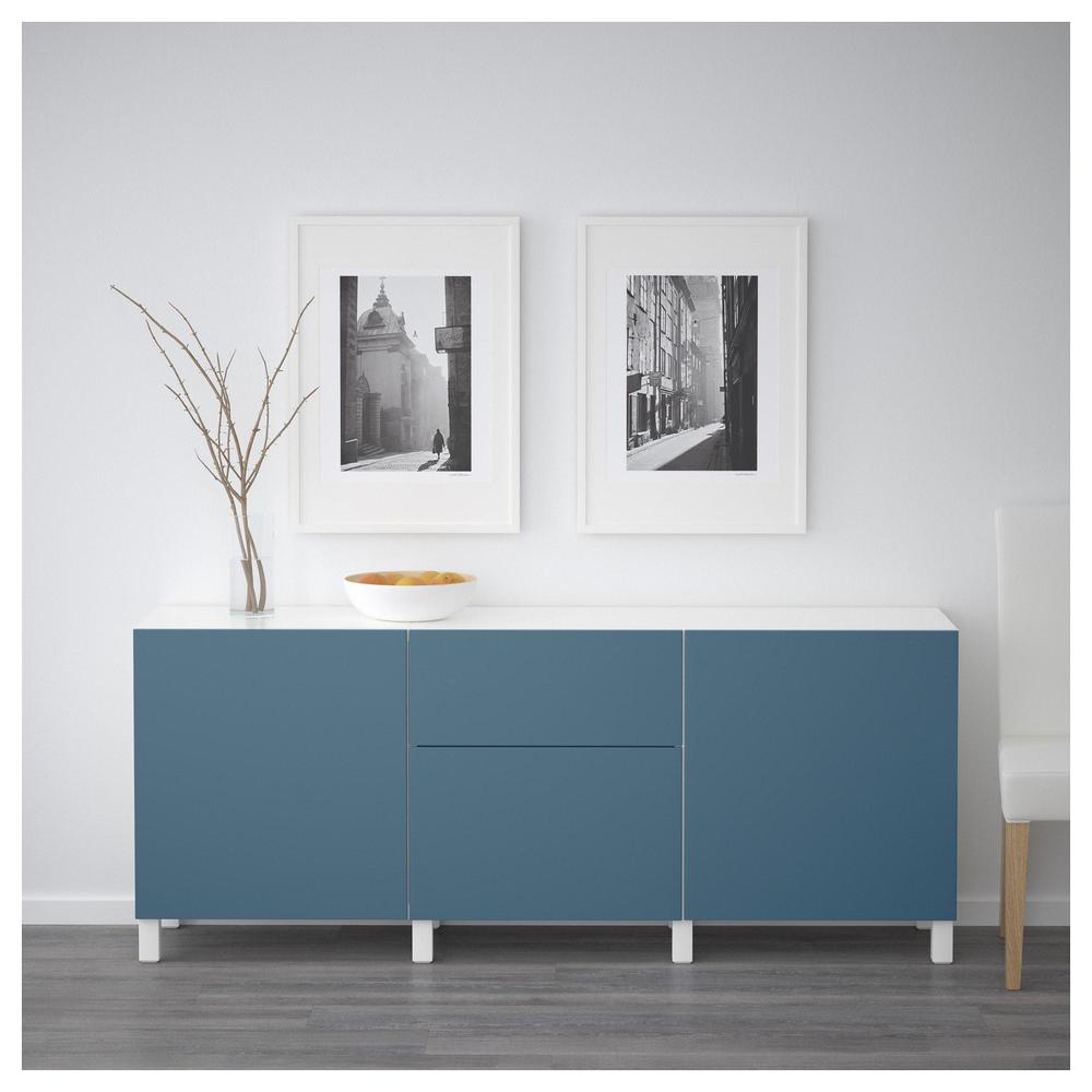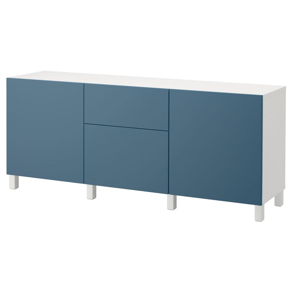 БЕСТО Комбинация для хранения с ящиками - белый/Вальвикен темно-синий, направляющие ящика,нажимные 0.0/5 оценка (0 голосов)