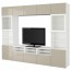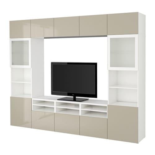 БЕСТО Шкаф для ТВ, комбин/стеклян дверцы - белый/Сельсвикен глянцевый/бежевый матовое стекло, направляющие ящика,нажимные