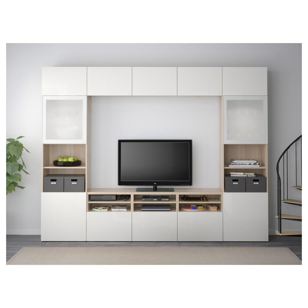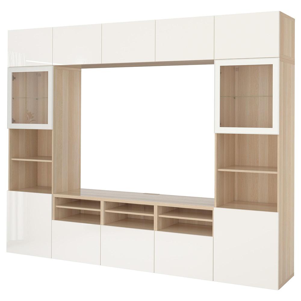 БЕСТО Шкаф для ТВ, комбин/стеклян дверцы - под беленый дуб/Сельсвикен глянцевый/белый прозрачное стекло, направляющие ящика, плавно закр 0.0/5 оценка (0 голосов)
