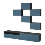 БЕСТО Шкаф для ТВ, комбинация - черно-коричневый/Грундсвикен темно-серый, направляющие ящика,нажимные