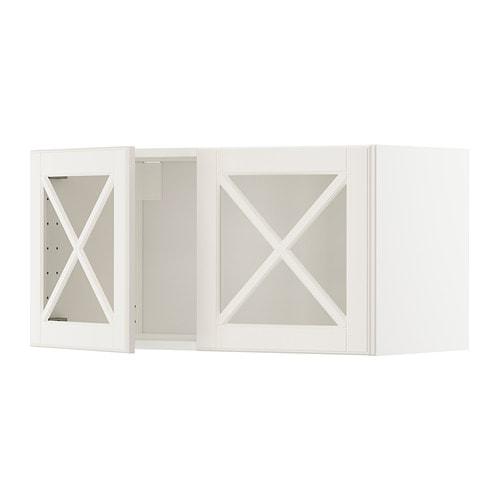 МЕТОД Навесной шкаф с 2 стеклянн дверями - белый, Будбин белый с оттенком