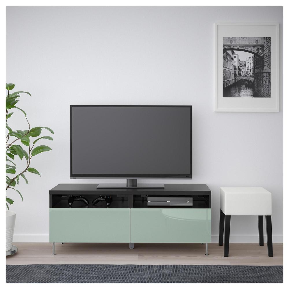 БЕСТО Тумба д/ТВ с ящиками - черно-коричневый/Сельсвикен глянцевый/серо-зеленый светлый, направляющие ящика,нажимные 0.0/5 оценка (0 голосов)