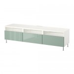 БЕСТО Тумба д/ТВ с ящиками - белый глянцевый/серо-зеленый светлый, направляющие ящика, плавно закр