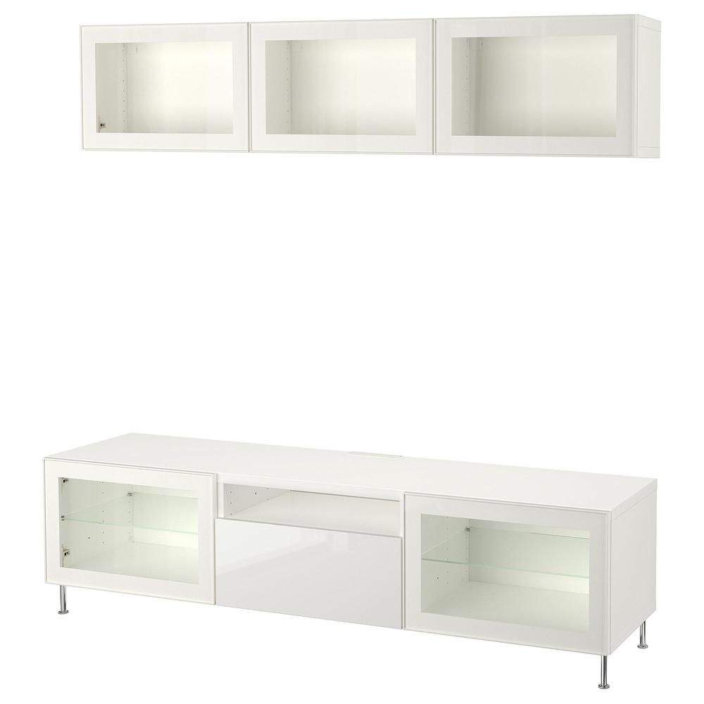 БЕСТО Шкаф для ТВ, комбин/стеклян дверцы - белый глянцевый/белый прозрачное стекло, направляющие ящика,нажимные