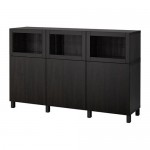 БЕСТО Комбинация для хранения с дверцами - черно-коричневый/Халлставик сине-зеленый