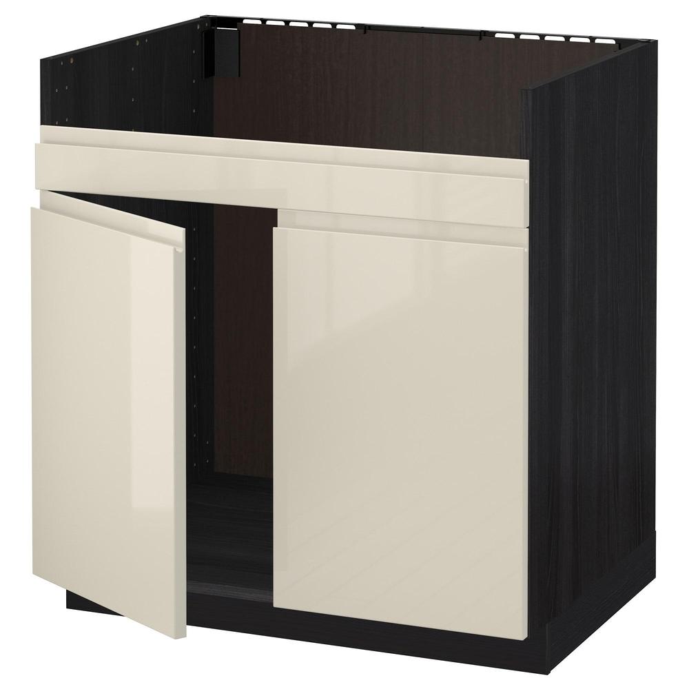 МЕТОД Напольный шкаф д/двойн мойки ХАВСЕН - под дерево черный, Воксторп глянцевый светло-бежевый