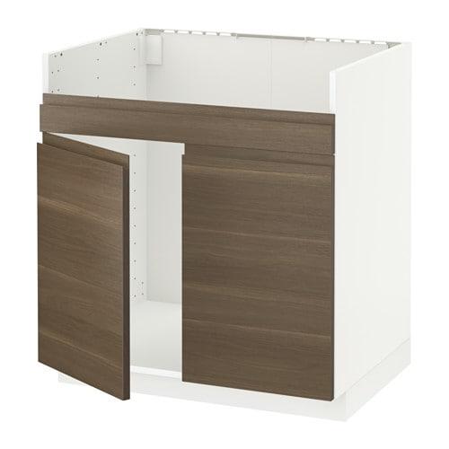 МЕТОД Напольный шкаф д/двойн мойки ХАВСЕН - белый, Воксторп под грецкий орех