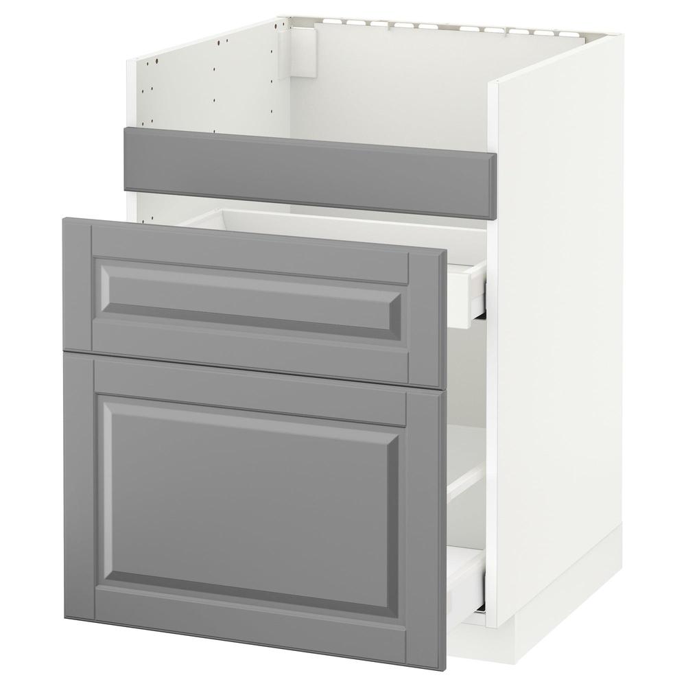 МЕТОД Напол шк д/мойки ХАВСЕН/3фасада/2ящ - белый, Будбин серый, 60x60 см
