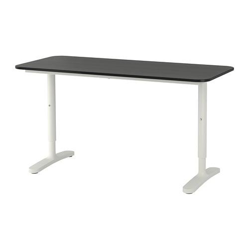 БЕКАНТ Письменный стол - ясеневый шпон/черная морилка/белый